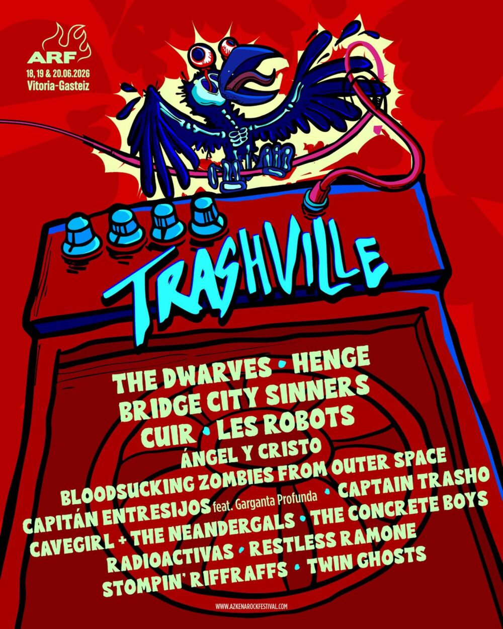 Ako je Azkena Rock Festival hram rokenrola, Trashville je njegova poremećena mašinska soba koja će uskoro eksplodirati. Šator uronjen u permanentni, frenetični haos gde vlada izobličenje, logika se ruši, a krilata stvorenja haosa preuzimaju kontrolu.