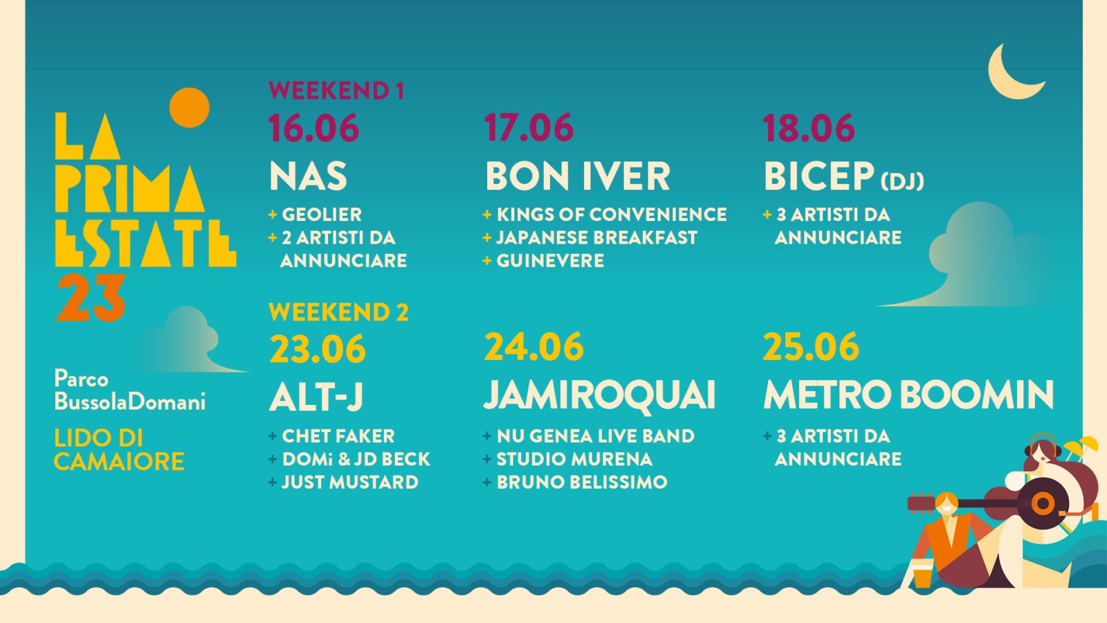 La Prima Estate je festival nastao pod okriljem ekipe koja stoji iza famoznog Lucca Summer Festivala, zaslužnog za dovođenje mnoštva velikih muzičkih zvezda u Toskanu. Svake večeri nastupaju četiri izvođača na bini koja se nalazi nadomak mora u prelepom parku u italijanskom gradiću. Pored muzike, posetiocima je na raspolaganju jedinstvena ponuda hrane, umetnosni, lokalne kulture, prirode i sportskih aktivnosti – kombinacija muzike, odmora i zabave.