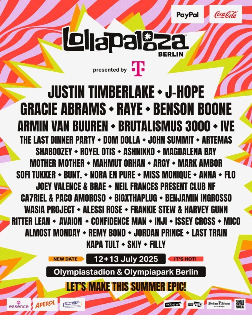 Festivalce očekuju pop superstar Justin Timberlake, odnosno BTS zvezda j-hope, moćne vokalne performanse koje će doneti Gracie Abrams, RAYE i Benson Boone, te ultraenergične beatove koje će pripremiti Armin van Buuren i Brutalismus 3000. I to nije sve — IVE, Artemas, Shaboozey, FLO debitovaće na berlinskoj Lolli, uz još mnogo iznenađenja, najavljuju iz organizacije.