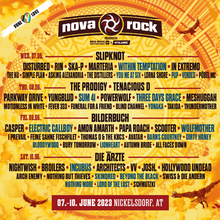 Nova Rock jedan je od najpopularnijih festivala u Austriji. Već je najavljeno da će hedlajneri biti Slipknot, The Prodigy, Tenacious D, Bilderbuch i Die Ärzte, a sada im se u trećoj fazi pridružuje kontigent od 18 novih bendova.