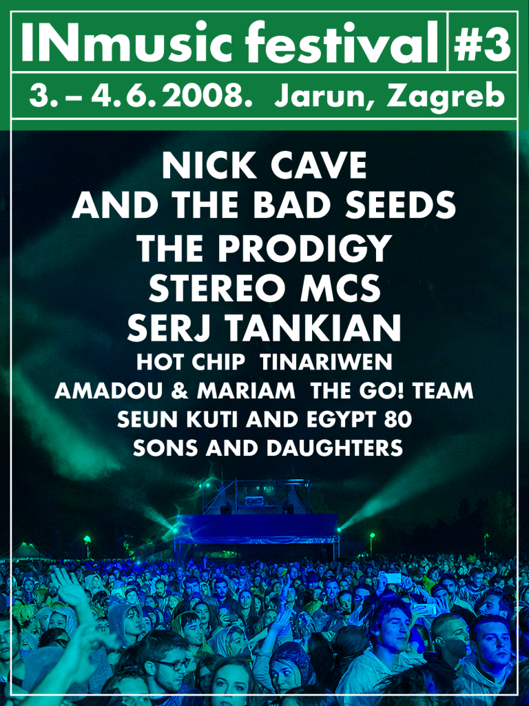 Zvezde trećeg Inmusica, vraćenog u julski termin, bili su Nick Cave & the Bad Seeds, kome je ovo bilo prvo gostovanje na Jarunu, kao i Serj Tankian iz benda System of a Down, te koncertna atrakcija The Prodigy. Atheist Rap, Let 3, Vještice i Kiril Džajkovski predvodili su regionalne izvođače.