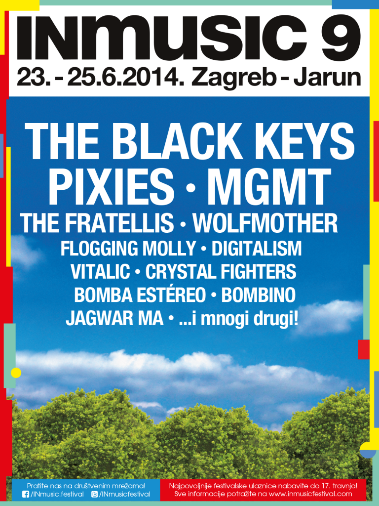 Za 9. INmusic je provejavala priča kako će najveći hedlajner biti Pearl Jam, ali do toga ipak nije došlo. Zagrebački festival u ovoj godini se okrenuo indie priči pa smo videli bendove kao što su Pixies, Foals, The Fratellis, MGMT, Bombay Bicycle Club, Jagwar Ma, dok su Flogging Molly ponovnim gostovanjem potvrdili da su miljenici lokalne publike. Za raspojasani ples bili su zaduženi Digitalism, Bomba Estereo i Crystal Fighters.